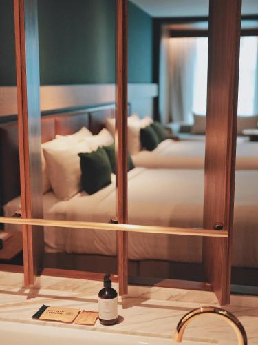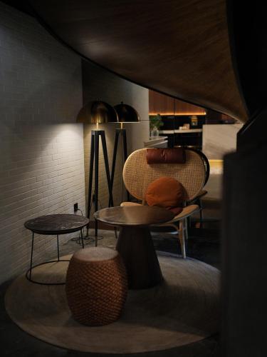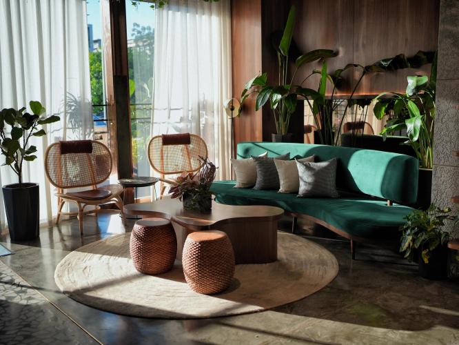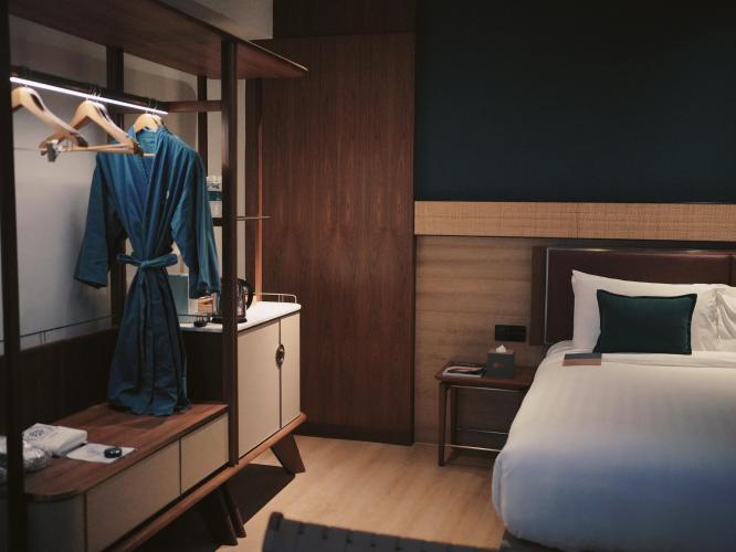 整個酒店的設計也是,一開始想遵循大酒店品牌的思路,設計成世界人民的家,國際化那種,後來Alan覺得來沙巴就是要體驗沙巴本土的東西,所以又推翻了之前的設計圖紙,有了我們喜歡的青色、金色,地板的洋灰色等等,想做一個本土的味道,沙巴本來就是一個融合了多元文化的地方,例如芭蕉族、華人、馬來人、印度裔,所以綠蔓也是這樣一種感覺,LUMA在芭蕉族的語言裡是光的意思,Alan的大兒子的名字裡也有個光字,這也是他的第一家酒店,已經得到萬豪的設計酒店品牌認證。