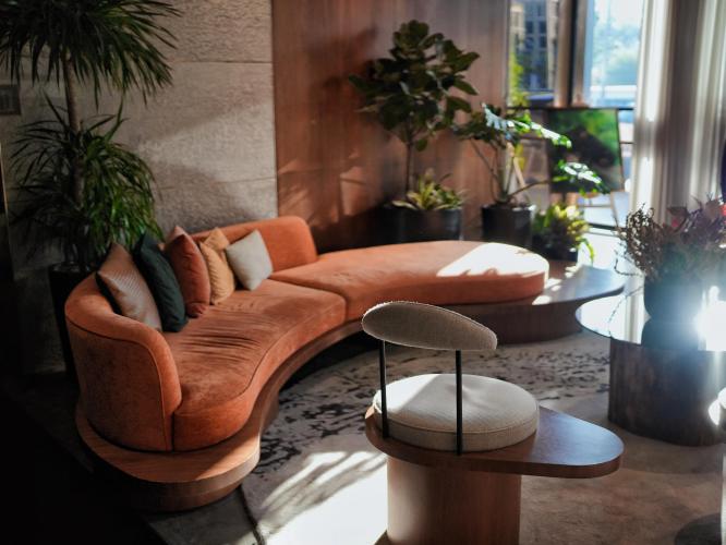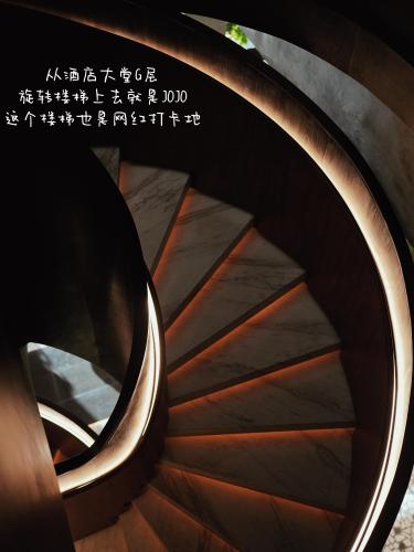 大堂就像個客廳,一部分是和cafe連起來的,中央還有一個螺旋的網紅樓梯,直通二樓的JOJO餐廳,陽光很溫柔地灑進來,甚至有隻小貓咪乘開門的時候偷跑進來,立馬往地板上一趟開始和我們撒嬌,他好像是專門進來撒嬌的,這裡動物和人類的親近程度真的很有愛,被發現後又被大堂經理溫柔地抱出去了哈哈哈哈