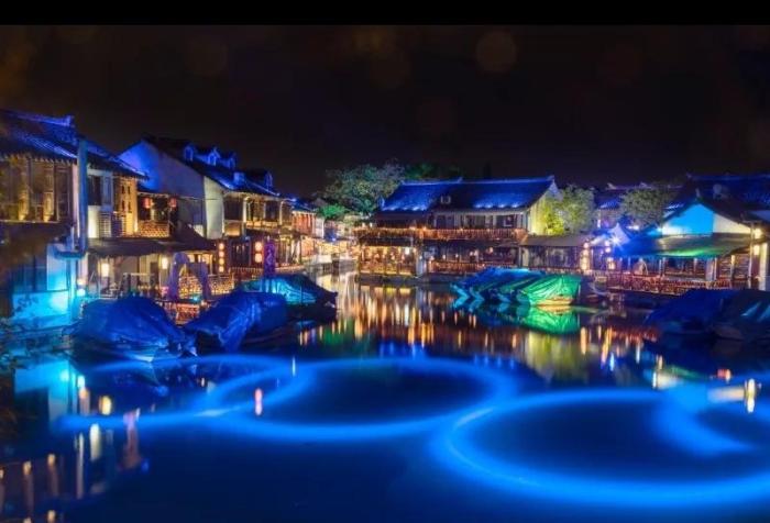 清晨7點前闖入“無人之境”,青瓦白牆在薄霧中若隱若現,石板路的回聲是時光的私語;夜幕降臨時,60元/人的搖櫓船劃入星河——兩岸燈火倒映水面,恍若跌入童話裡的琉璃世界。