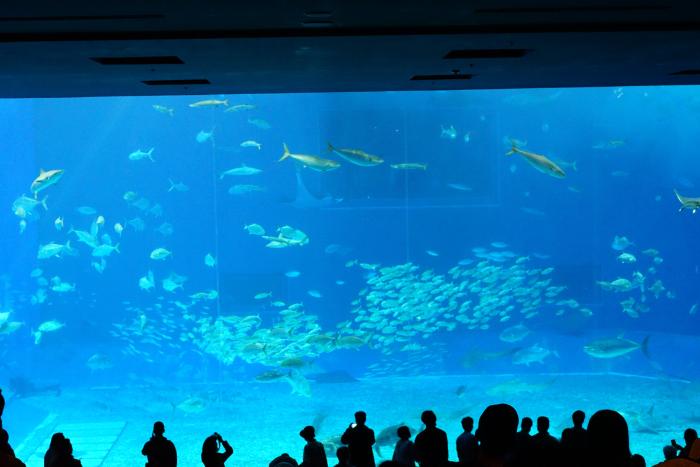 作為沖繩的常規旅遊專案,再往北走就到快到盡頭的時候,所有的遊客都會來到繩本島的西海岸的沖繩美麗海水族館,這是亞洲最大的水族館之一,水族館的佔地面積很大,尤其以其巨大的珊瑚礁水槽和鯨鯊著名,引得遊客駐足觀看,不忍離去。