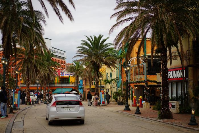 從那霸市坐公交車,40-50分鐘就到了北固町的海邊小鎮,又叫美國村,原來這裡是美軍的基地,搬到別處以後,留下了很多美國風情的建築和商店,現在成了一個熱門的必到景點。這裡的海邊小店,美式的風格的建築,海邊的落日,可以很愜意的住上兩天,可以這麼說,在沖繩的旅行中,這裡算是比較值得看的景點兒之一。