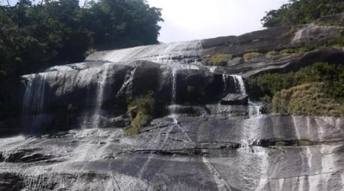 比如在大片花崗岩曲折而下的