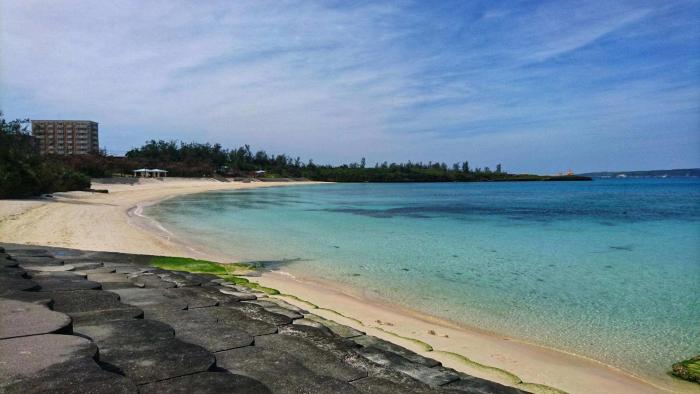 與那霸前濱海灘:砂質細膩,海水湛藍,相比於砂山這裡風浪較小,適合下水遊玩