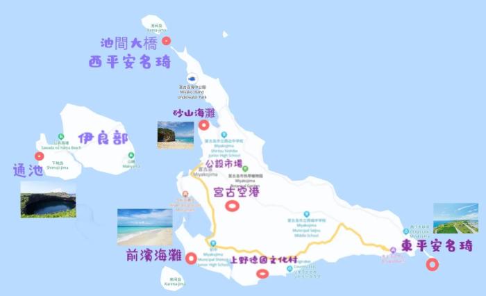 從那霸機場出發,乘坐飛機或船隻即可抵達宮古島。有公共汽車,但是很少,不適合咱們遊客,一般情況下就是計程車或者租腳踏車。Ⓜ️