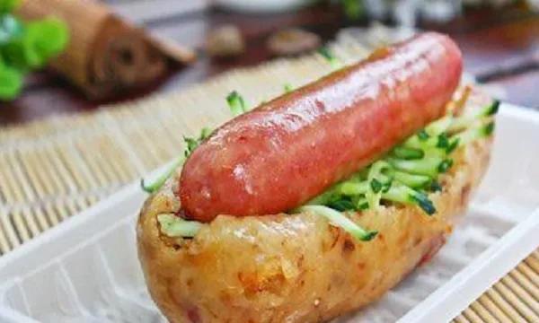 特色:將糯米腸煎至金黃酥脆,切開後包上烤得滋滋冒油的豬肉腸,再根據個人口味加入酸菜、黃瓜、花生粉等配料。口感層次豐富,糯米腸的軟糯與豬肉腸的肉香完美融合。