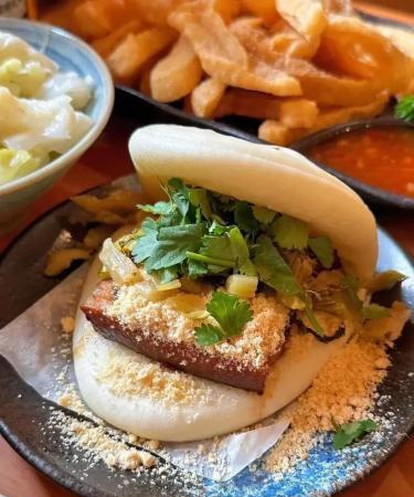 特色:起源於福建,傳入臺灣後發展出獨特風味。餡料通常包括片狀五花肉、酸菜、花生粉及香菜等,形狀和內餡使其在臺灣也被稱作“虎咬豬”。外皮鬆軟,內餡鮮香可口。