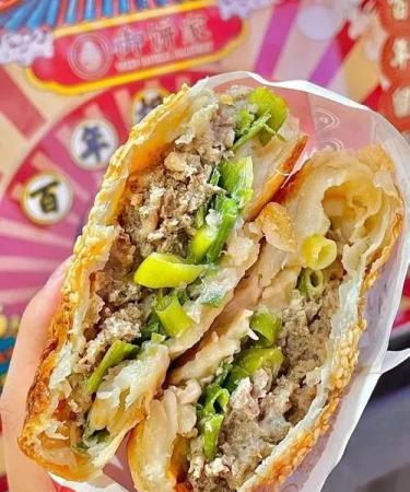 特色:將滿滿的胡椒餅餡料包進麵皮裡放入窯爐裡烤制。烤熟後的餅皮焦香有咬勁,層次豐富,內餡的肉香和蔥香完美交融。